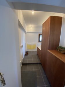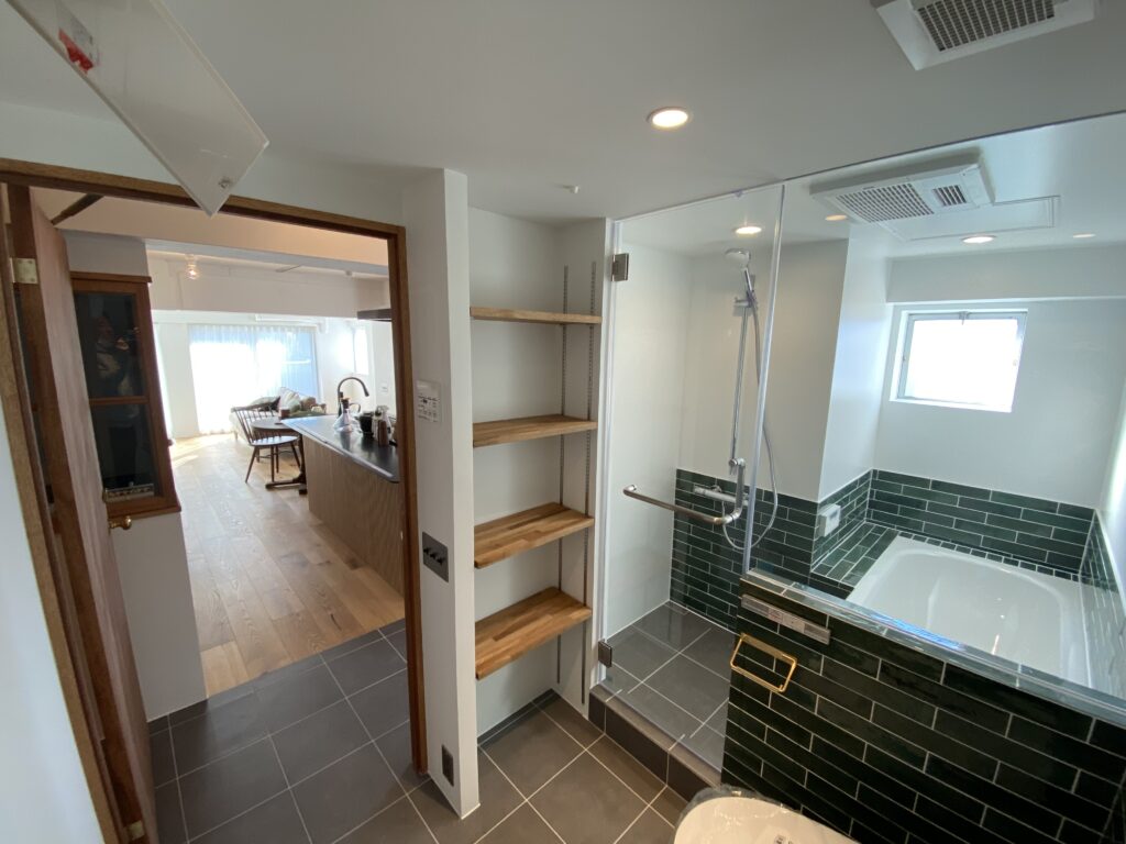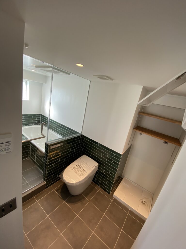 バスルーム、トイレは水回りの為、3分艶で仕上げです。
