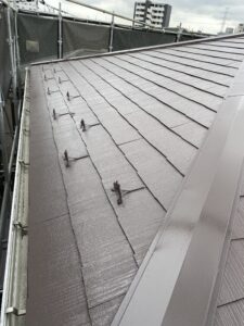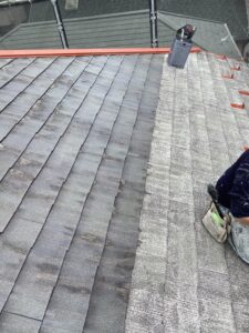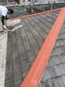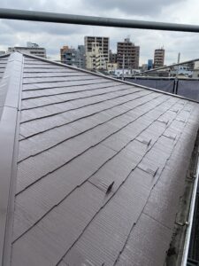 東京都、江戸川区にてスレート屋根塗り替え工事の模様です。