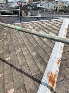東京都、江戸川区にてスレート屋根塗り替え工事の模様です。