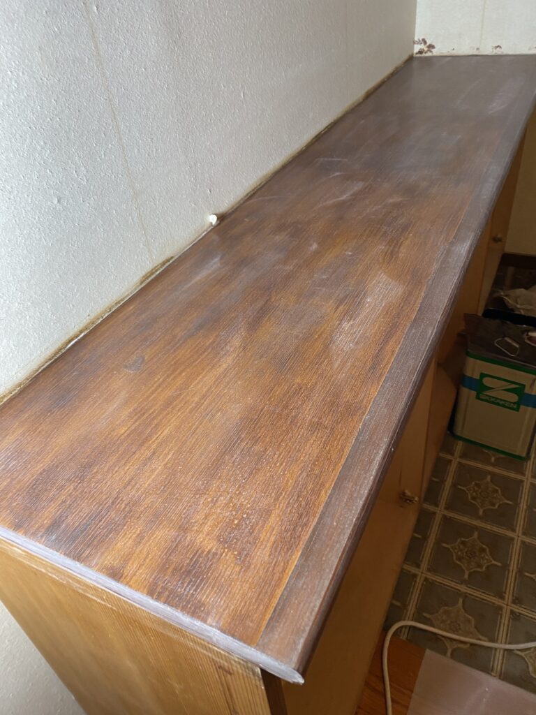 天板の色落ちが気になるとのことで染色してクリアー塗装してきました。