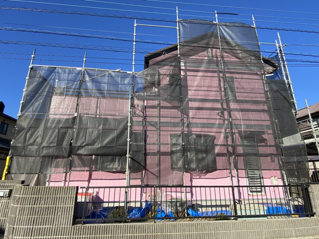 茨城県つくば市において外壁塗装工事の様子です。